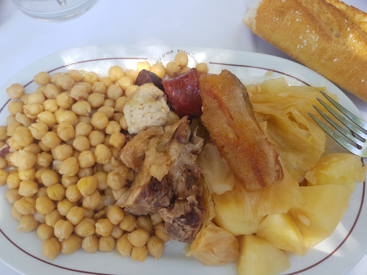The menu is anchored around hearty, familiar Spanish staples—dishes like Chopitos cooked Andalusian style, Cocido Madrileño, and Bonito con Tomate underline the kitchen’s focus on traditional flavors done well. Portions tend to be generous, making it a fitting choice for those who want to share plates or linger over a filling mid-day meal. The presence of lighter options such as Ensaladilla Rusa and Gazpacho also balances the richer offerings, accommodating varying appetites.